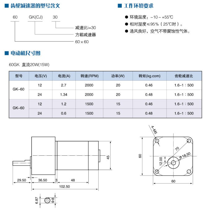 直流減速電機是由HK(CJ)系列方箱齒輪與各系列的直流電動機耦合而成,采用高精度加工設備,結(jié)合完善的工藝加工而成。具有噪音低,運轉(zhuǎn)平穩(wěn)的特性。減速比3-500,搭配不同功率電機,可得到理想的輸出轉(zhuǎn)距。